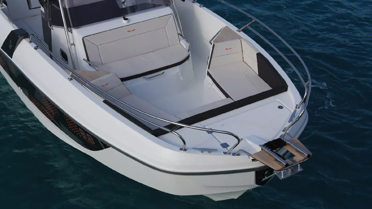 Malgré un design alléchant, je trouve que ce modèle manque un peu de vivacité en mer. L'Air Step® 2 fait son job, mais la sensation reste moins dynamique que sur d'autres dayboats similaires. Par contre, le poste de pilotage central est vraiment confortable pour trois personnes.