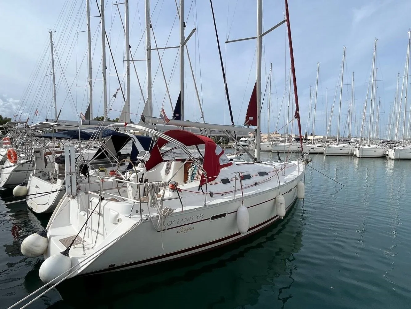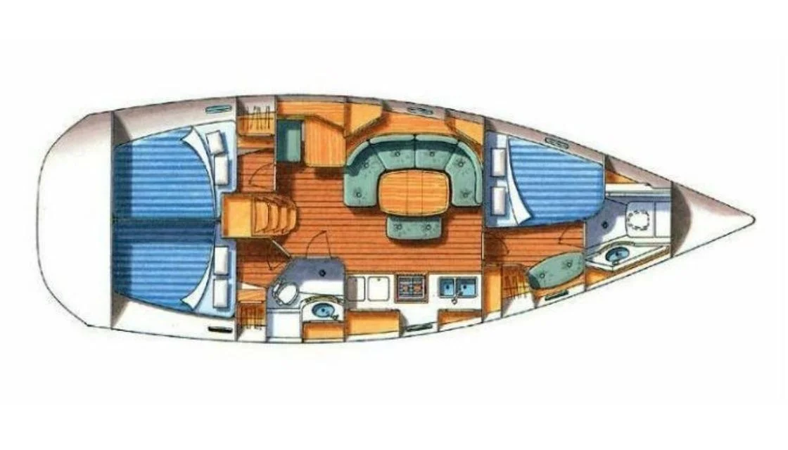 Naviguer sur l'Oceanis 393 Clipper est un vrai plaisir, surtout grâce à sa stabilité remarquable sous voile. Sa configuration intérieure en 2 cabines offre un confort optimal pour un couple avec quelques amis. Cependant, la banquette sans dossier dans la cuisine peut être un peu gênante lors des repas en mer agitée.
