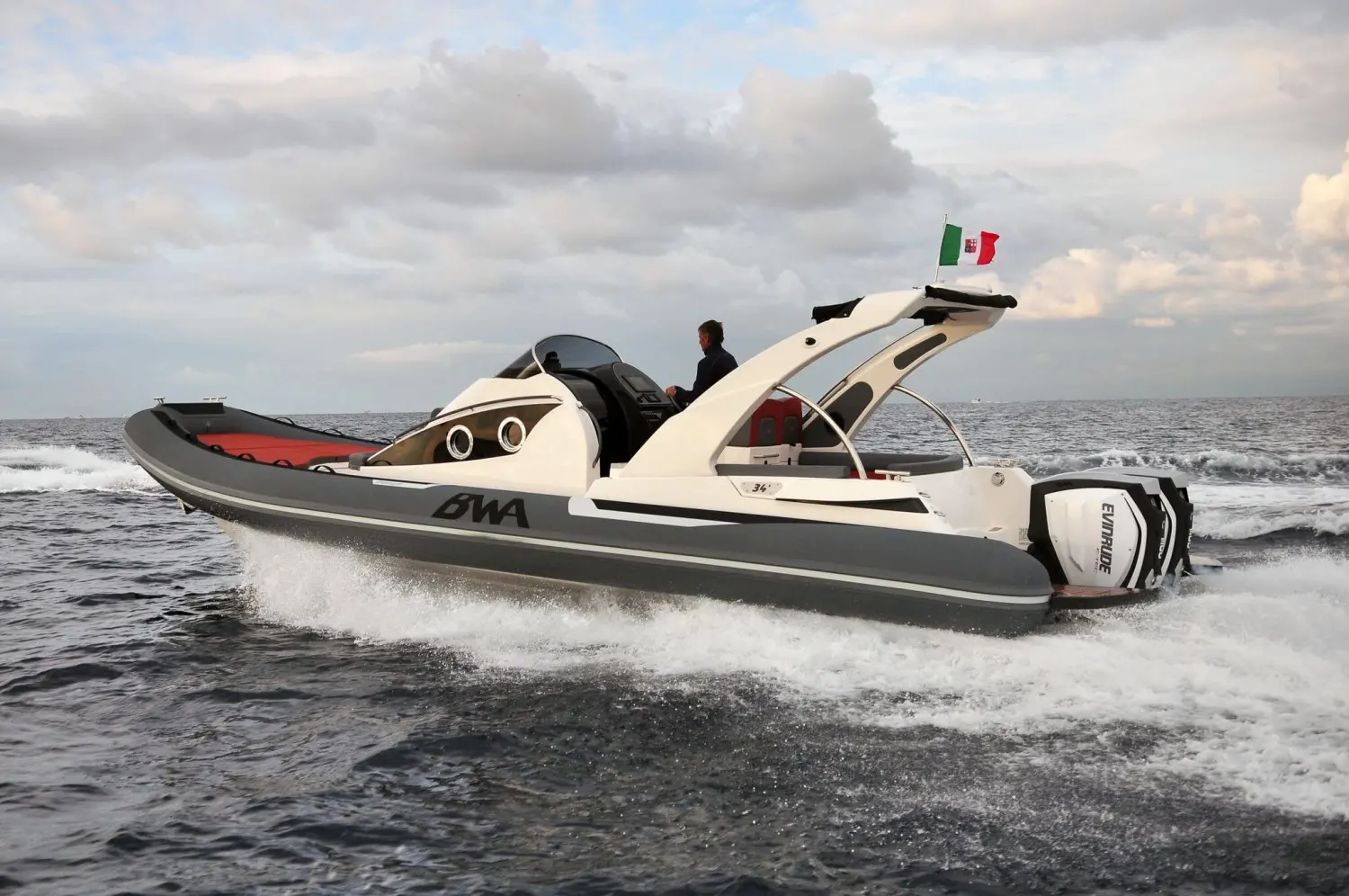 Le prix du BWA 34 Premium dépend principalement de sa motorisation : hors-bord double moteur Evinrude E-Tec G 2 x 300 ch ou motorisation in-board jusqu'à 700 ch. Plus les moteurs sont puissants, plus l'estimation sera élevée.